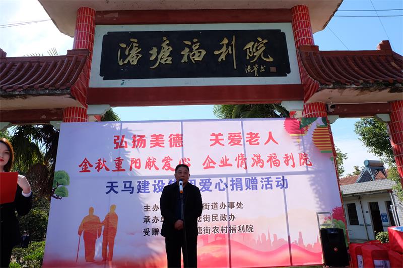 潘塘街道辦事處主任吳宏剛表示今后街道會持續(xù)與天馬建設(shè)合作,用實(shí)際行動真心愛老、敬老、助老,以一顆赤誠的心回報(bào)社會。