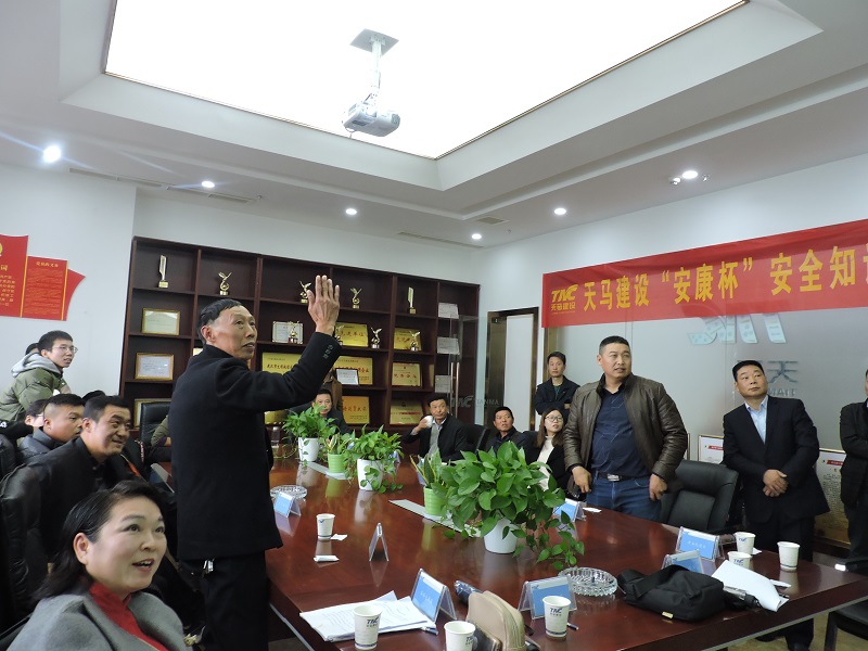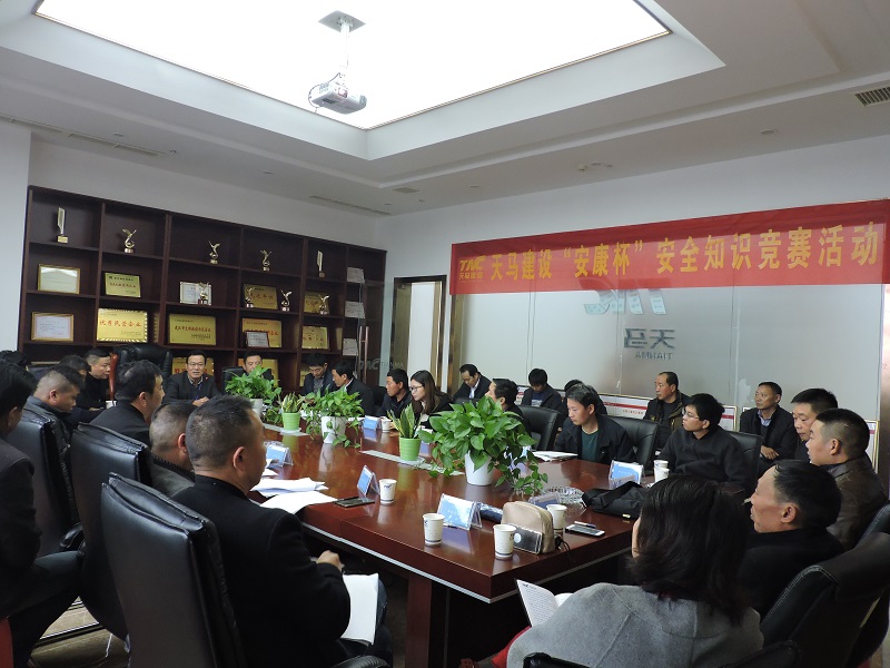 11月16日上午,天馬建設(shè)2018年“安康杯”安全知識(shí)競(jìng)賽在公司會(huì)議室順利召開。此次競(jìng)賽由集團(tuán)安全生產(chǎn)部主辦,綜合部協(xié)辦,旨在深入開展以“落實(shí)全員安全責(zé)任,促進(jìn)企業(yè)安全發(fā)展”為主題的安康杯活動(dòng),不斷加強(qiáng)全體職工的安全管理與監(jiān)督工作。集團(tuán)總經(jīng)理高昌盛、總工程師余勝利出席了本次競(jìng)賽并作出動(dòng)員,來(lái)自各在建項(xiàng)目部的14支代表隊(duì),共計(jì)40余名員工參加了競(jìng)賽。