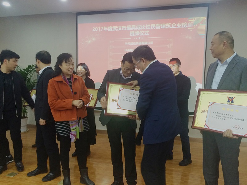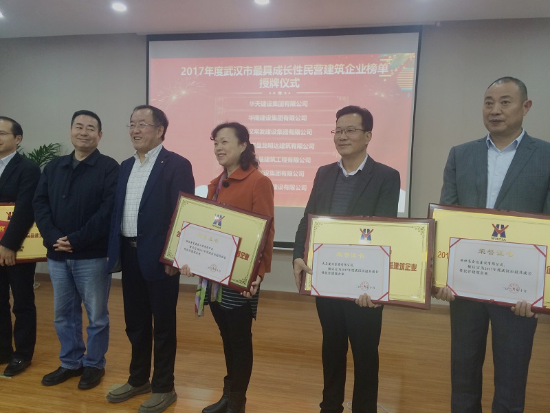 11月6日,武漢建筑業(yè)協(xié)會(huì)召開(kāi)“促進(jìn)武漢市建筑業(yè)高質(zhì)量發(fā)展座談會(huì)(第三次)暨最具成長(zhǎng)性民營(yíng)建筑企業(yè)授牌儀式”。會(huì)上發(fā)布了“2017年度武漢市最具成長(zhǎng)性民營(yíng)建筑企業(yè)”榜單,共有21家企業(yè)上榜,天馬建設(shè)集團(tuán)位列其中。