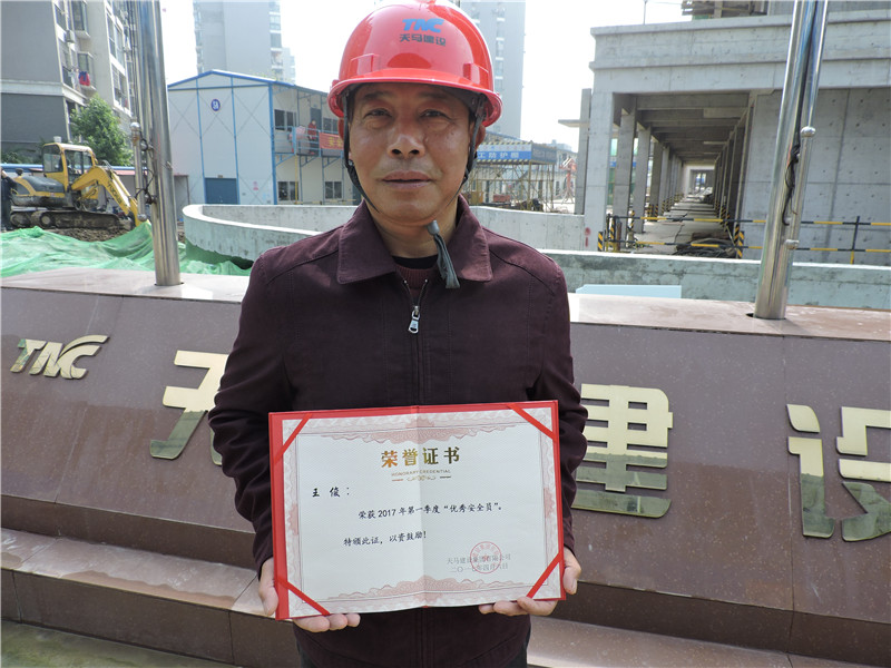 天馬建設(shè)集團(tuán)2017年第一季度安全生產(chǎn)優(yōu)秀安全員:江騰廣場(chǎng)項(xiàng)目安全員——王金波