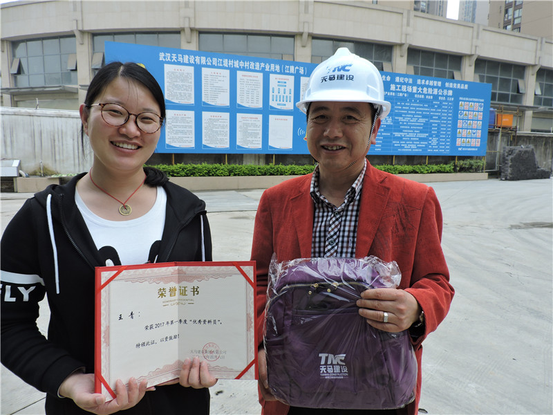 天馬建設(shè)集團(tuán)2017年第一季度安全生產(chǎn)優(yōu)秀資料員:江騰廣場(chǎng)項(xiàng)目資料員——王青