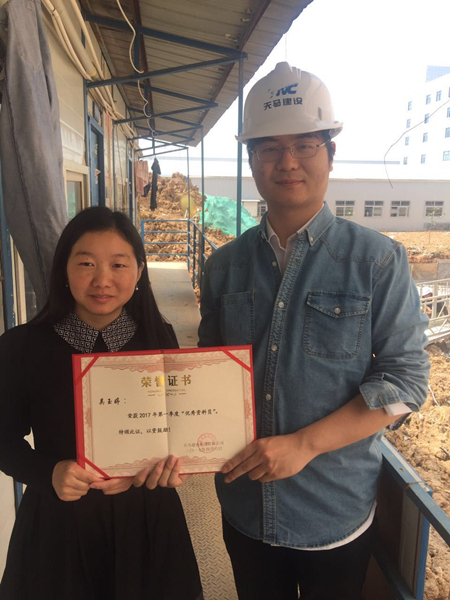 天馬建設(shè)集團(tuán)2017年第一季度安全生產(chǎn)優(yōu)秀資料員:中新環(huán)保產(chǎn)品研發(fā)基地項(xiàng)目資料員——吳玉婷