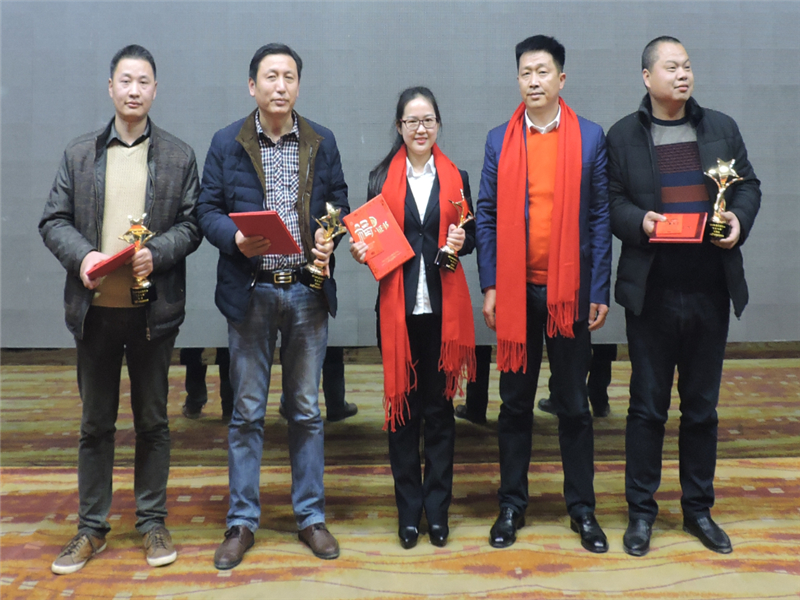 天馬建設(shè)集團(tuán)“2016年度優(yōu)秀員工——天馬之星獎(jiǎng)”:“中冶南方國(guó)際社區(qū)一期四標(biāo)段項(xiàng)目”項(xiàng)目經(jīng)理 張勇;“江騰廣場(chǎng)項(xiàng)目”技術(shù)總負(fù)責(zé)人 王詠鐵;“天馬建設(shè)集團(tuán)”財(cái)務(wù)室 汪珍才;“德成國(guó)際文化創(chuàng)意軟件園一期A區(qū)工程”現(xiàn)場(chǎng)負(fù)責(zé)人 劉澤詠。頒獎(jiǎng)人:集團(tuán)監(jiān)事會(huì)主席張幼明。