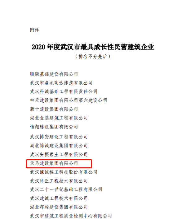 近日,天馬建設(shè)再度榮獲2020年度武漢市最具成長性企業(yè)和武漢建筑AAA級信用企業(yè)兩項殊榮。