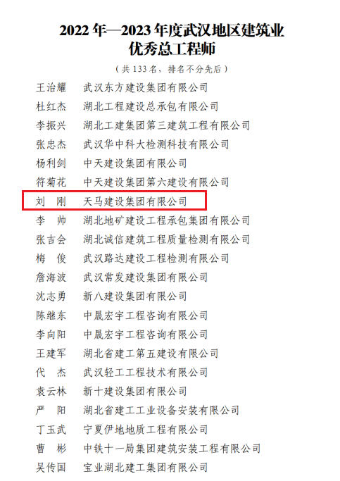 近日,天馬建設(shè)集團(tuán)榮獲2023年度武漢市最具成長(zhǎng)性企業(yè)和2022-2023年度武漢地區(qū)建筑業(yè)優(yōu)秀企業(yè),集團(tuán)黨委書記、董事長(zhǎng)馮義橋獲“優(yōu)秀企業(yè)家”,集團(tuán)總工程師劉剛獲“優(yōu)秀總工程師”,余勝武獲“優(yōu)秀項(xiàng)目經(jīng)理”。